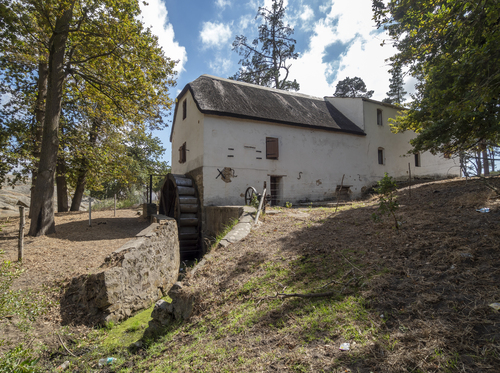 Farmhouse with cartwheel and irrigation canal in Mamre